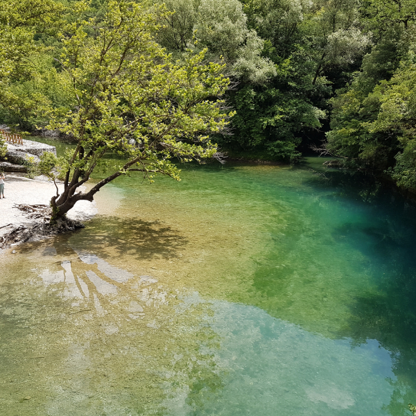 One of the cleanest rivers in Europe, with a constant temperature of 4°C all year round, the Voidomatis starts from the village of Vikos, crosses the Vikos gorge and flows into the Aoos. Along the way it ‘meets’ some of the most beautiful monotoxic, continental bridges. The most famous is the bridge of Kleidonia at the exit of the Vikos gorge.