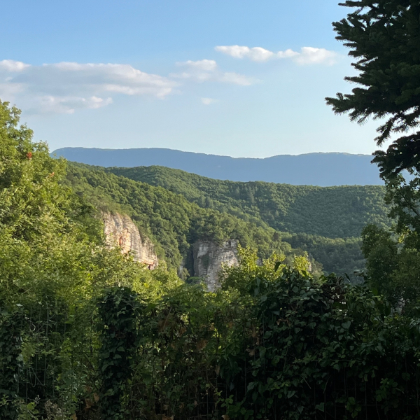 At an altitude of 1,340 m, the village of the same name is famous for its Skala, the farthest of the four that have survived. It is a cobbled street with 1,200 steps, carved from local stone. Until 1970 it was the only communication route with the neighbouring village of Kapesovo.